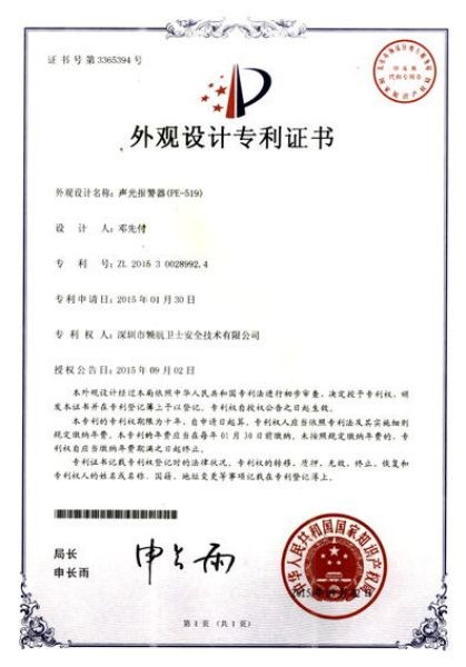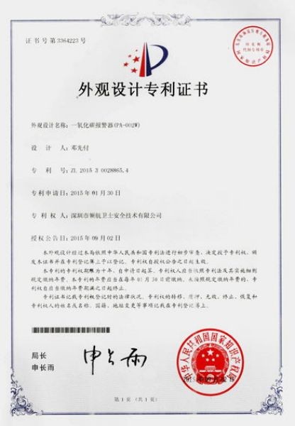 外觀設計專利證書