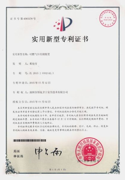 實用新型專利證書