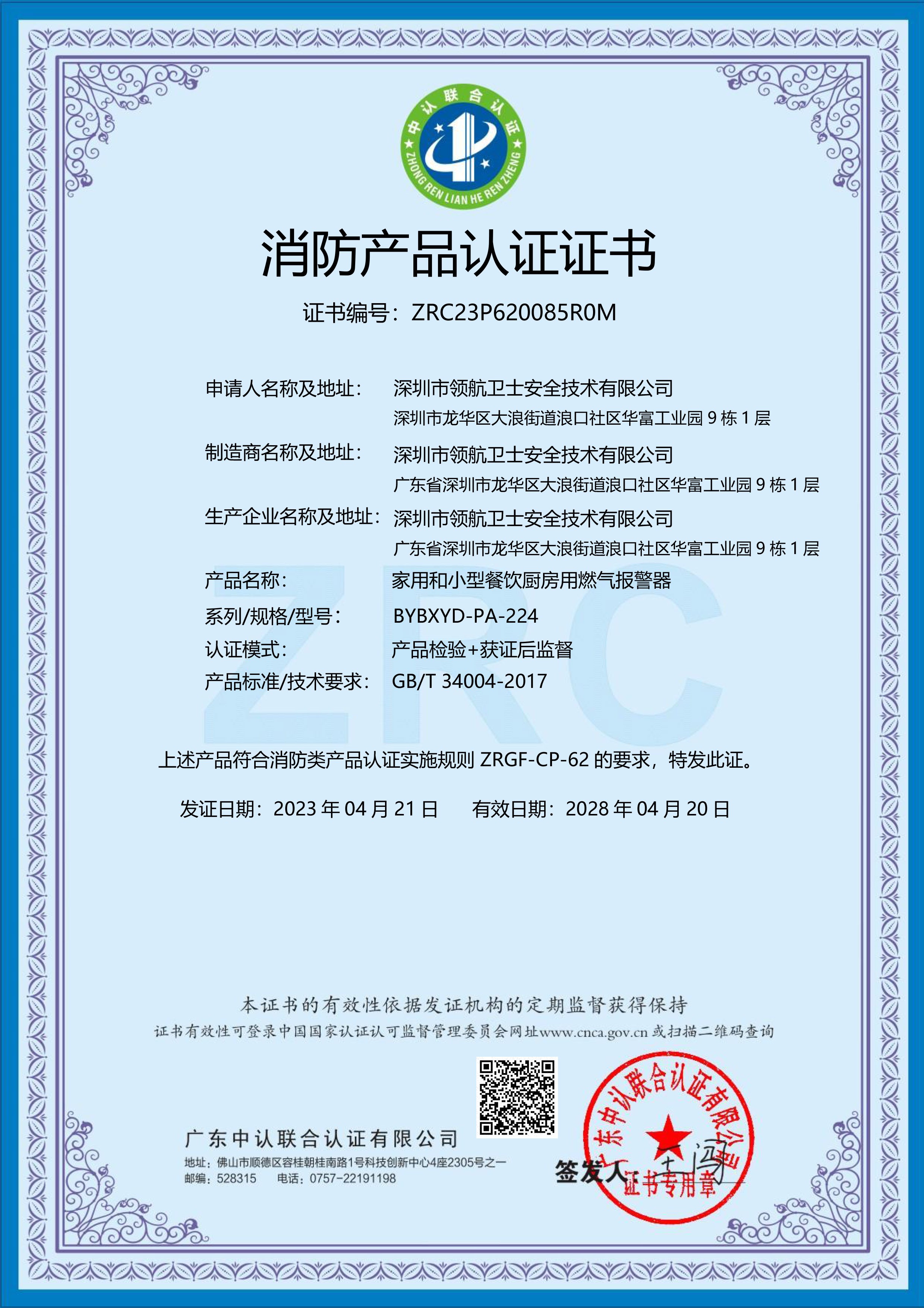 消防認證證書