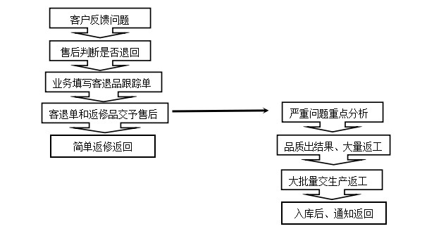 3)大批量需要改(gai)進的(de),需下品質異(yi)常(chang)單交研(yan)發部改(gai)進升級,研(yan)發部完成后下BOM,給生產,進行返(fan)工。完成返(fan)工后產品檢測合(he)格(ge)入庫(ku),通知業務將貨返(fan)回。