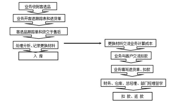 4)業務部根據(ju)維(wei)修(xiu)情況和(he)發貨時(shi)間進行處理(li)退貨流(liu)程,決定是否扣款和(he)收款事宜。