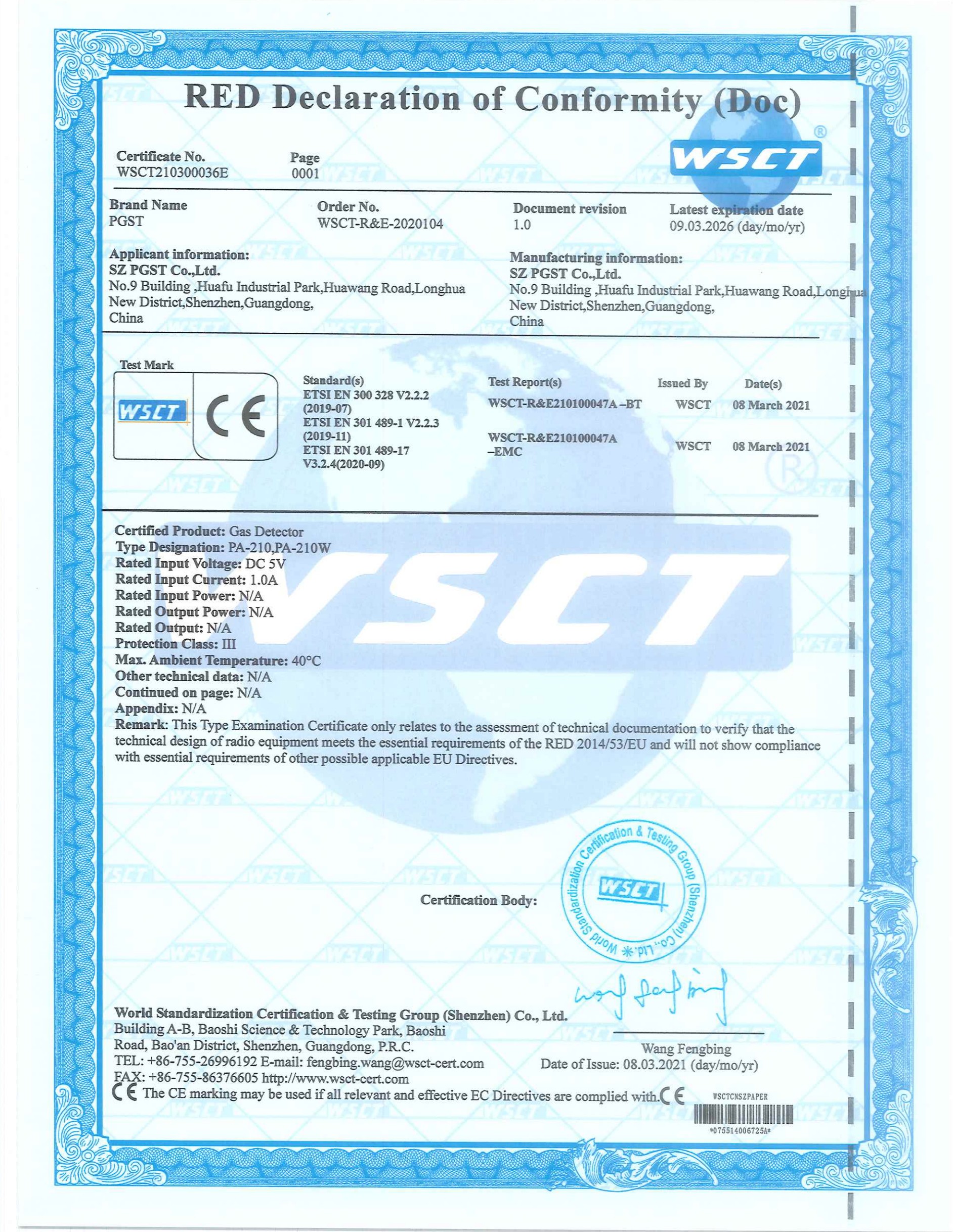 家用無線智能燃氣報警器(型號PA-210)