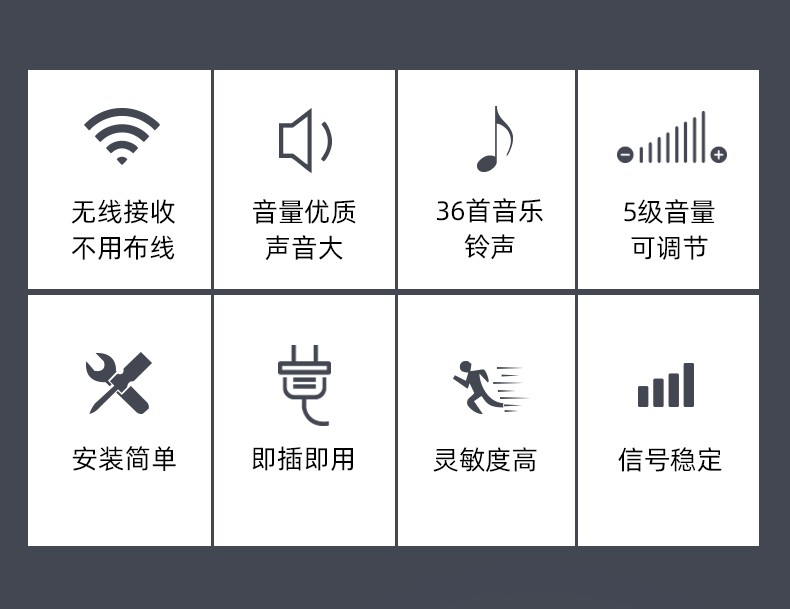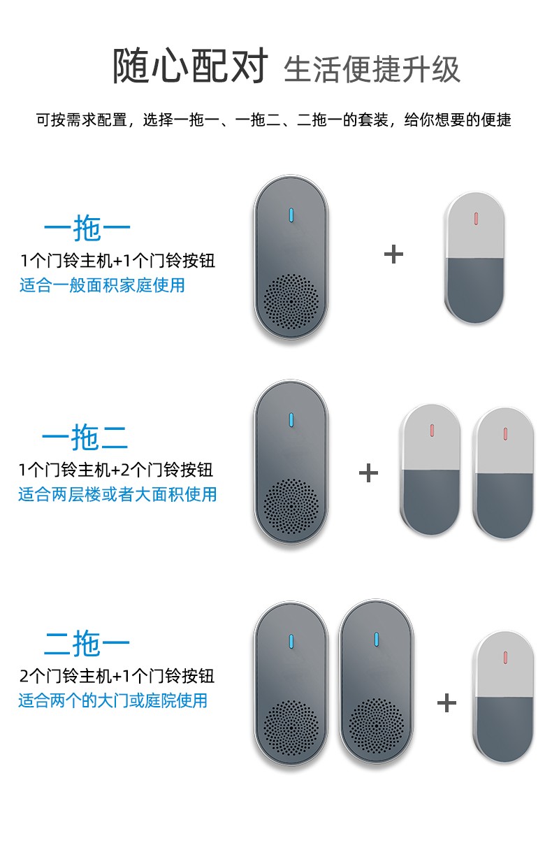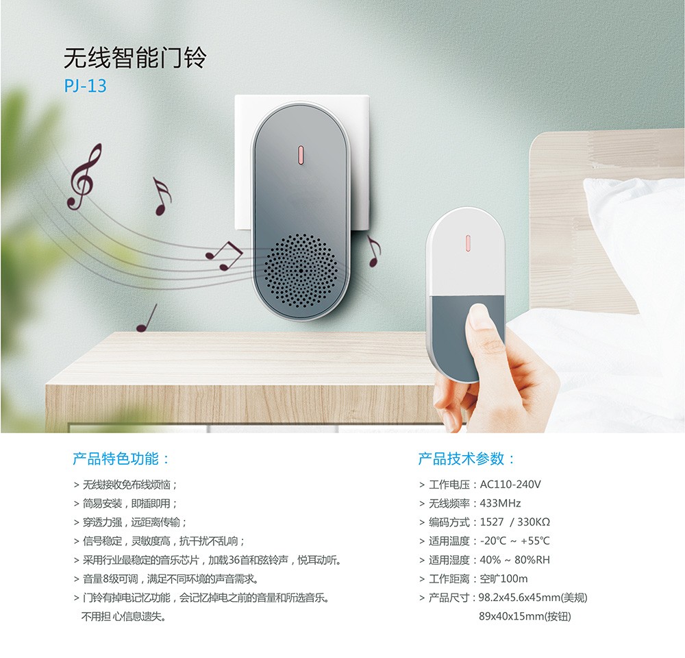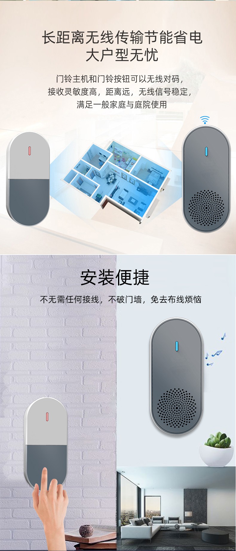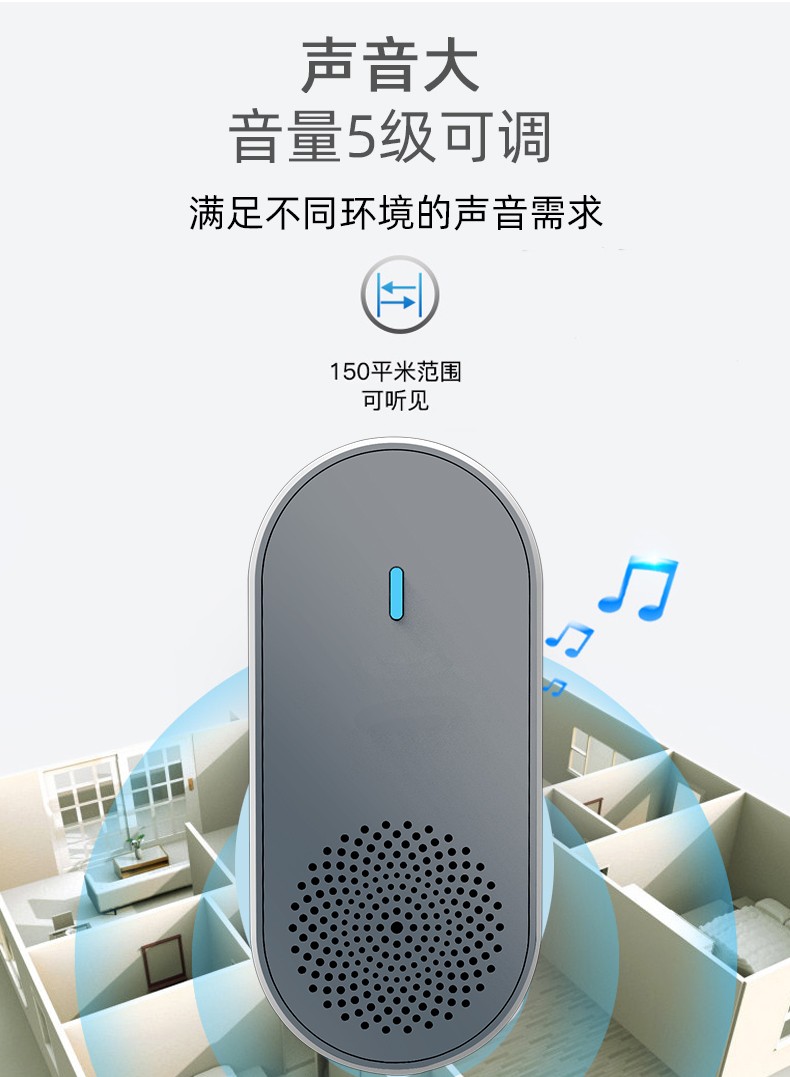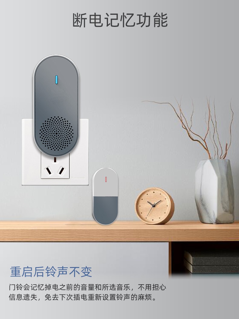 門(men)鈴有掉(diao)電記憶功能(neng),會記憶掉(diao)電之前的音量和所選音樂。不(bu)用擔心信息遺(yi)失。