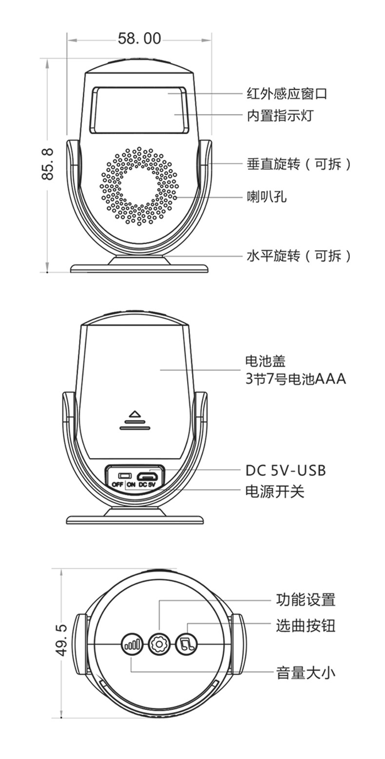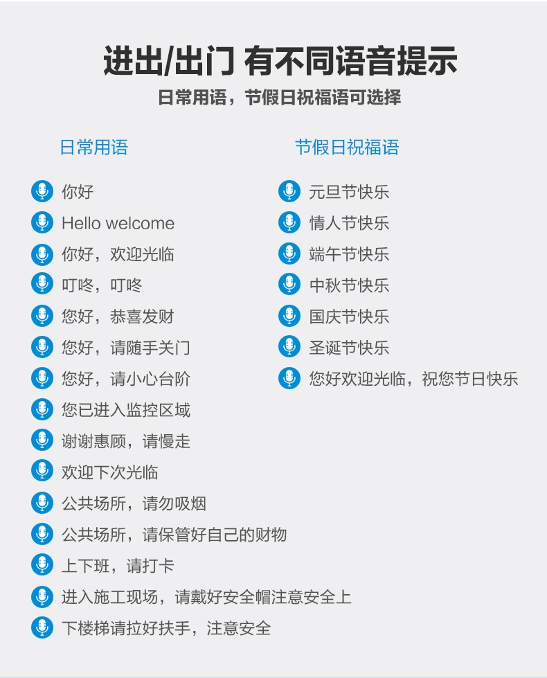 白天(tian)迎賓,夜晚防盜(多種模式,隨意切換);