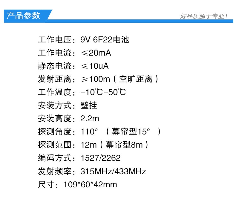 最遠探測距離 12 米;探測角度水平 110°,垂直15°
