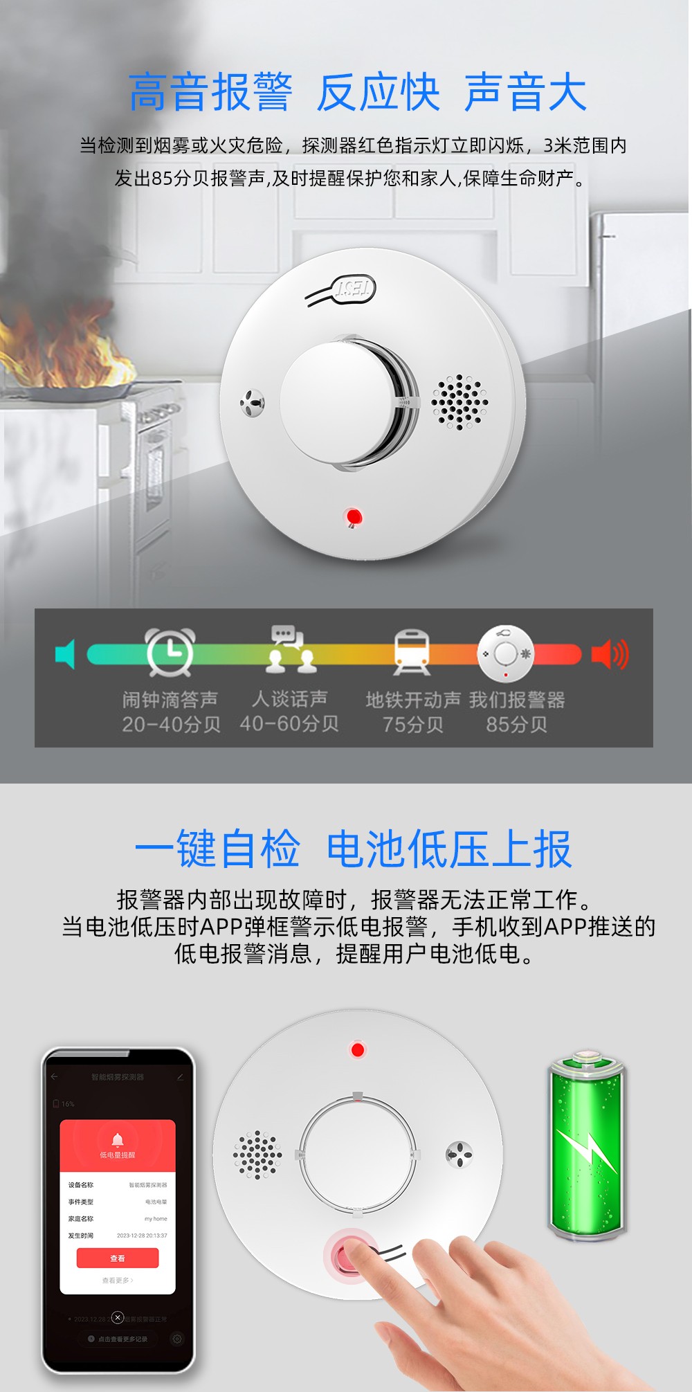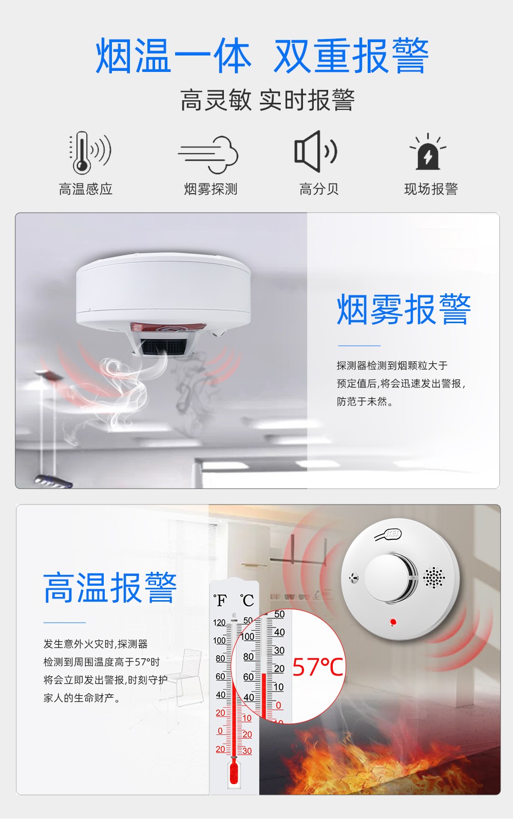 光(guang)電(dian)式感(gan)煙(yan)(yan)火災探測報警(jing)(jing)(jing)器(qi),采(cai)用特殊結構(gou)設(she)計的紅外光(guang)電(dian)傳(chuan)感(gan)器(qi)、性(xing)能可(ke)靠(kao)(kao)的MCU,具有靈敏度高(gao)、穩定可(ke)靠(kao)(kao)、 耗電(dian)小(xiao)、美觀耐用、使用方便等特點(dian)。獨立款產(chan)品內(nei)部(bu)具備光(guang)電(dian)傳(chuan)感(gan)器(qi),煙(yan)(yan)溫一體款產(chan)品的內(nei)部(bu)具備光(guang)電(dian)煙(yan)(yan)霧傳(chuan)感(gan)器(qi)和溫度傳(chuan)感(gan)器(qi),當報警(jing)(jing)(jing)器(qi)觸(chu)發報警(jing)(jing)(jing)時,會發出無線(xian)信號給報警(jing)(jing)(jing)主機,