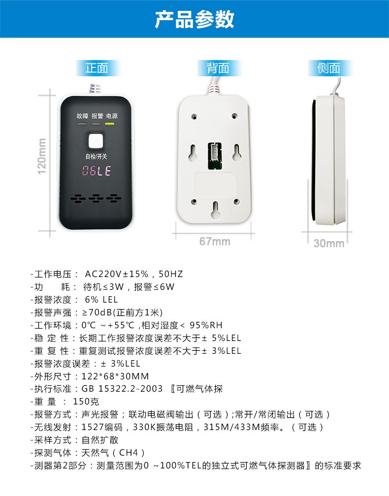 報(bao)警聲(sheng)強:≥70dB(正(zheng)前方1米(mi))