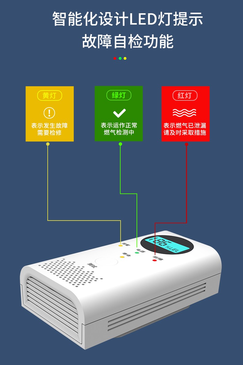 LCD實時顯示并上報燃氣(qi)濃度狀(zhuang)態(tai);
