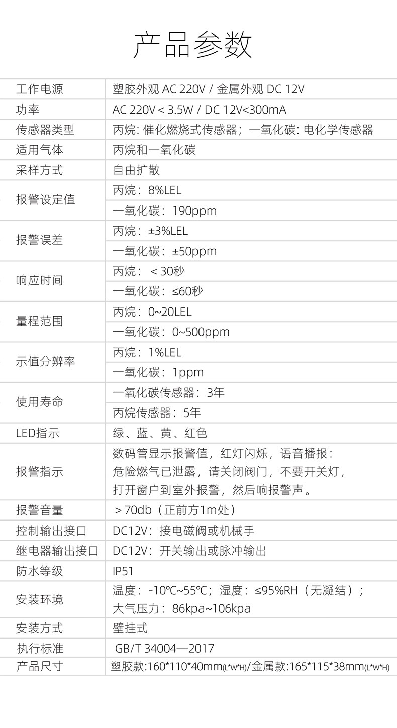 家用和小型餐飲廚房燃氣報警器 (型號BYBXYD-PA-224B)