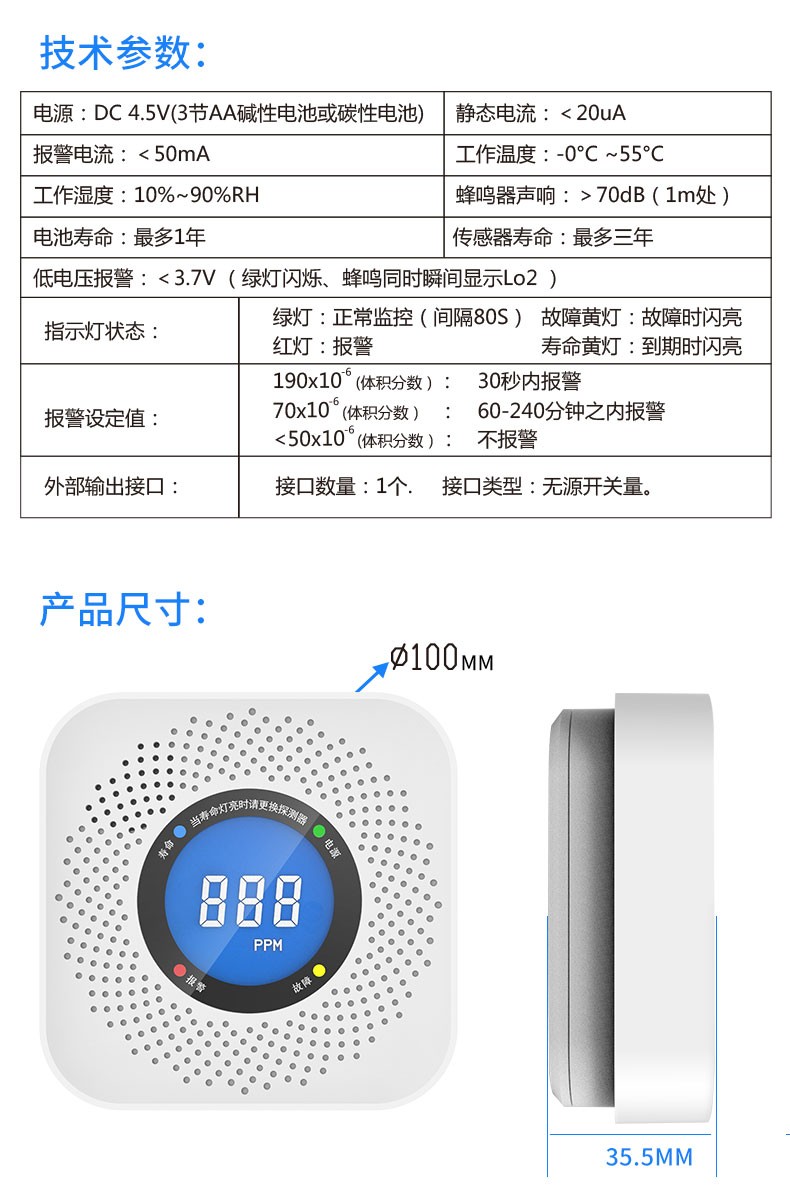 70x10(-6)(體積分數(shu)):60-240分鐘之內(nei)報警