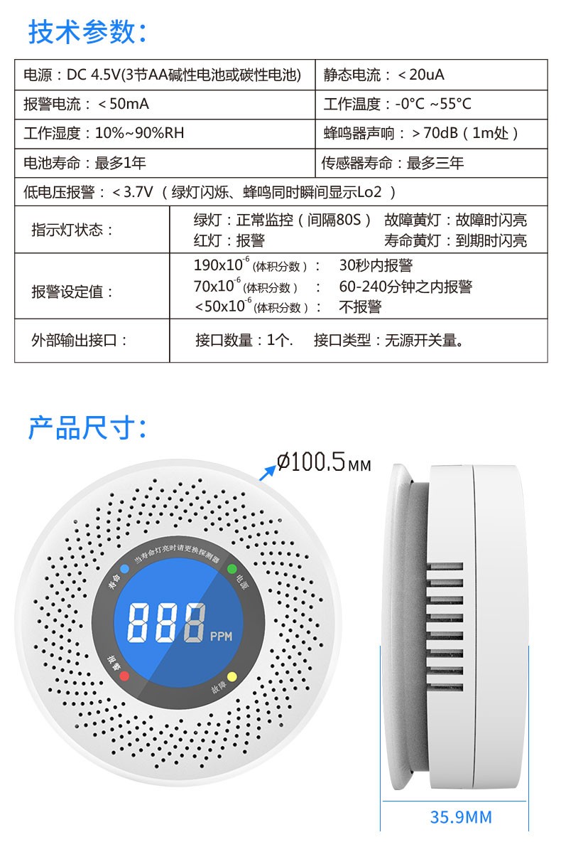 家用無線智能燃氣報警器(型號PA-210)