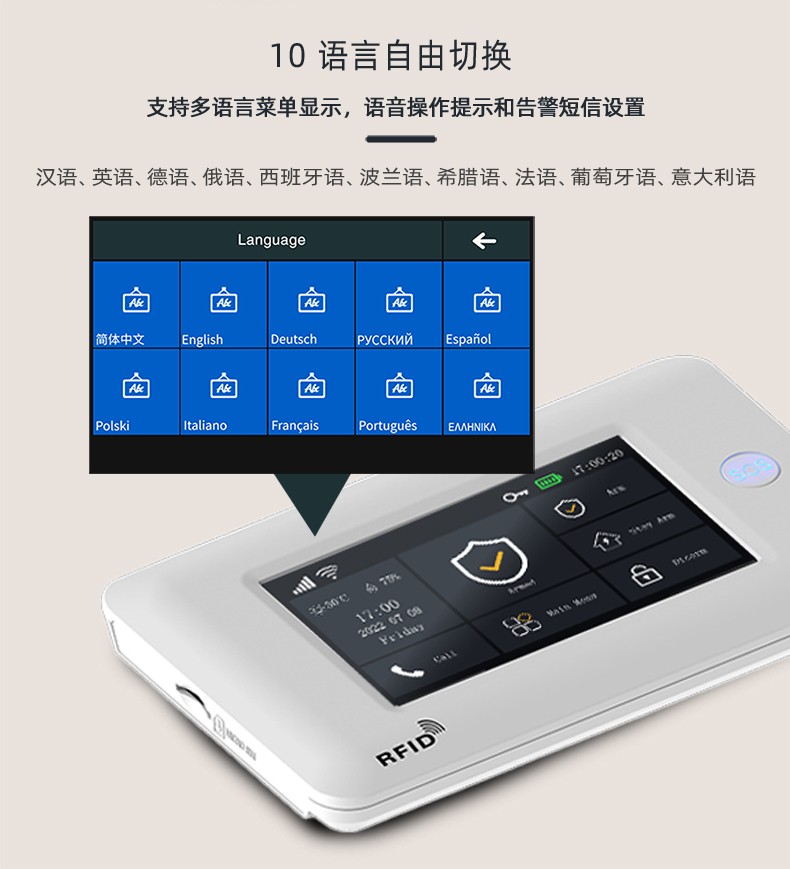內置10國語言,可(ke)自(zi)由(you)切換(huan)