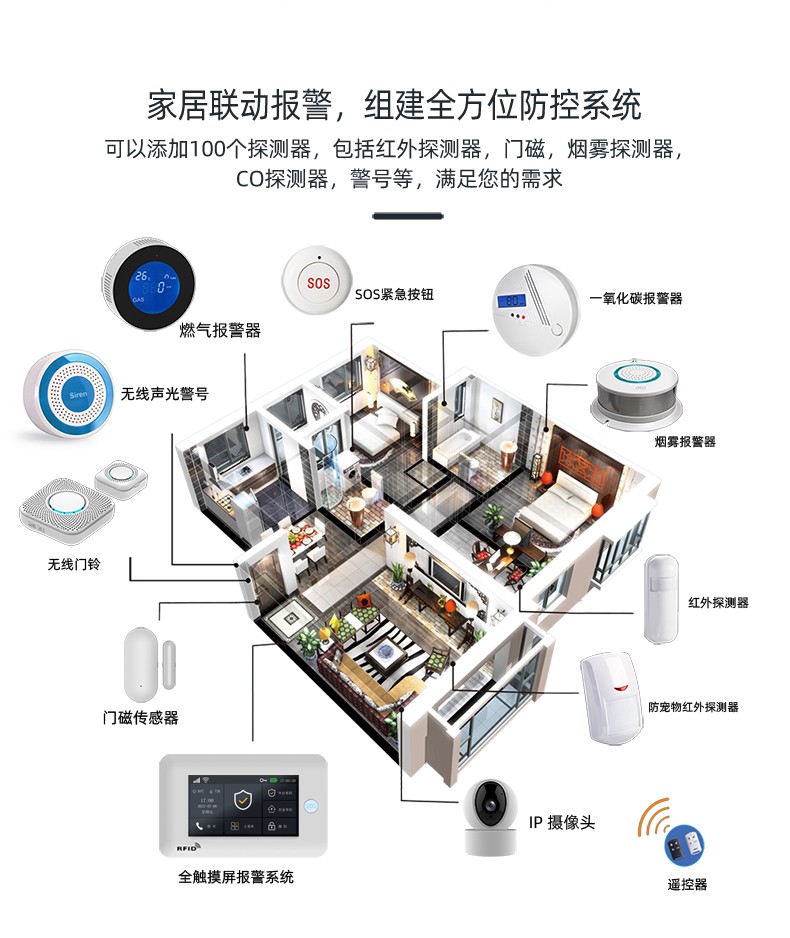 本地按鈕、APP 遠程、學習遙控器和無線探測器