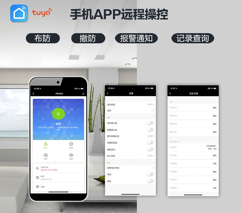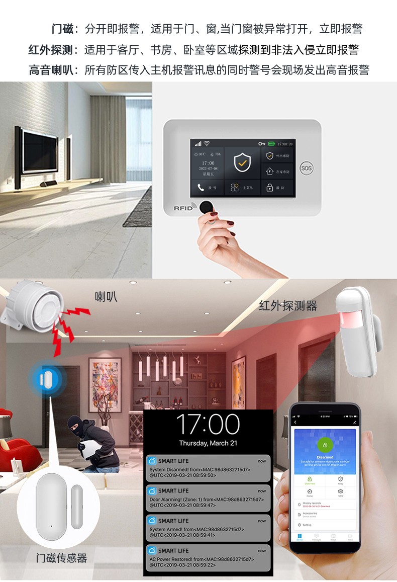 門(men)窗未關布防提醒(xing),低電(dian)壓報警提醒(xing)