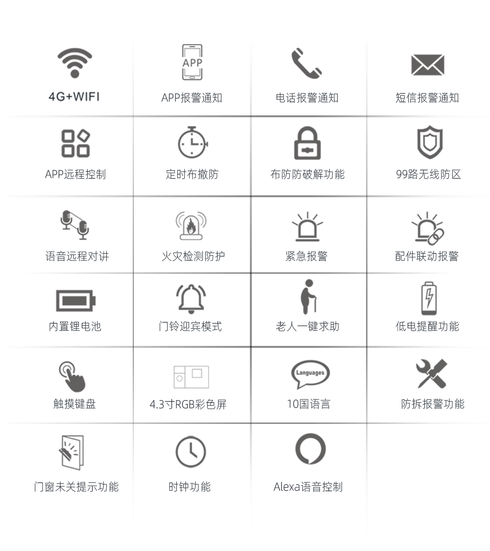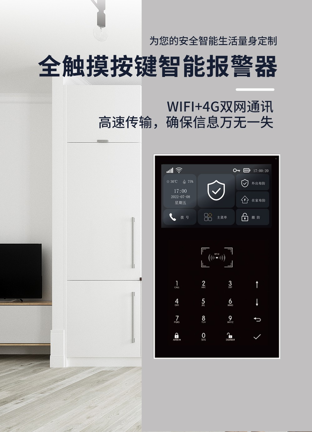 雙(shuang)網模式WIFI+GSM/4G,支持app推(tui)送(song)、短信推(tui)送(song)和(he)語音監聽等多(duo)通道報警方式;