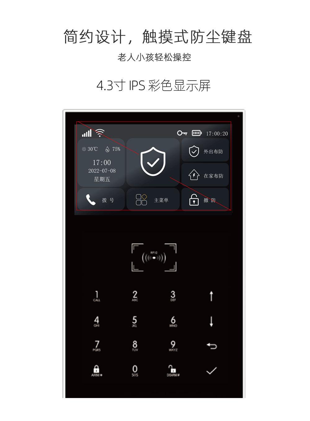 4.3寸IPS彩色全(quan)電容觸摸按鍵,簡約風格(ge),手感(gan)佳;
