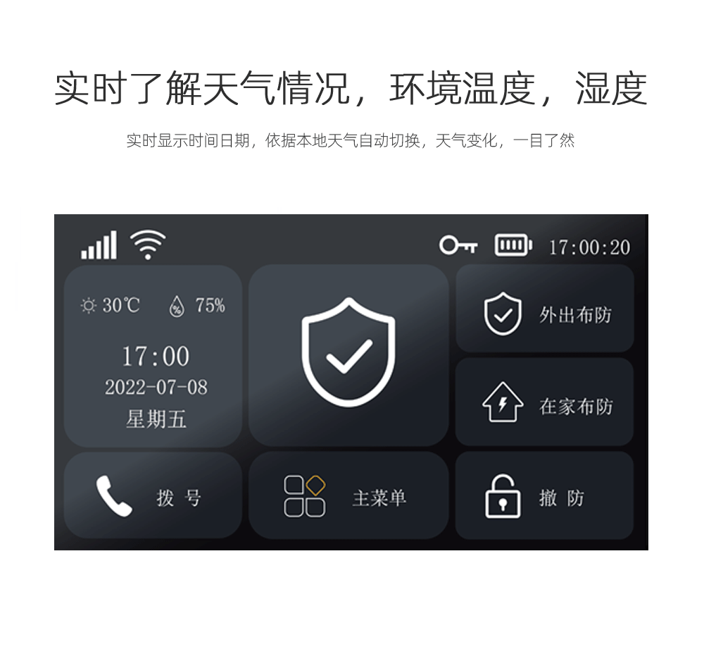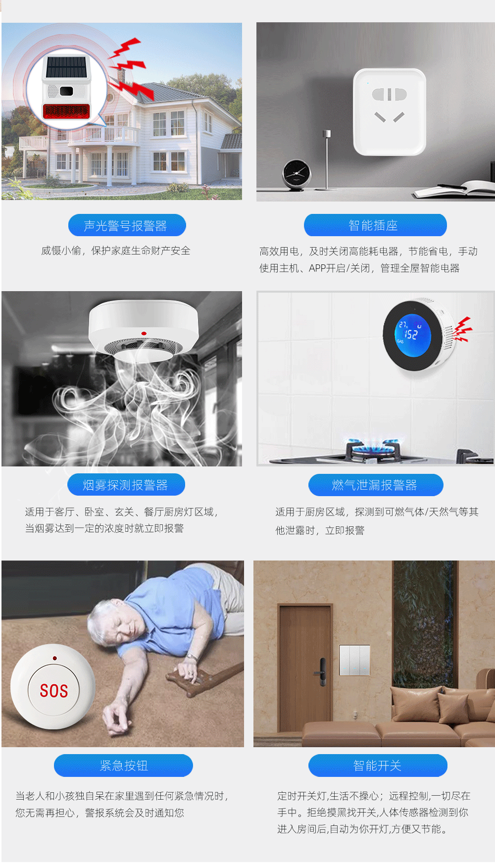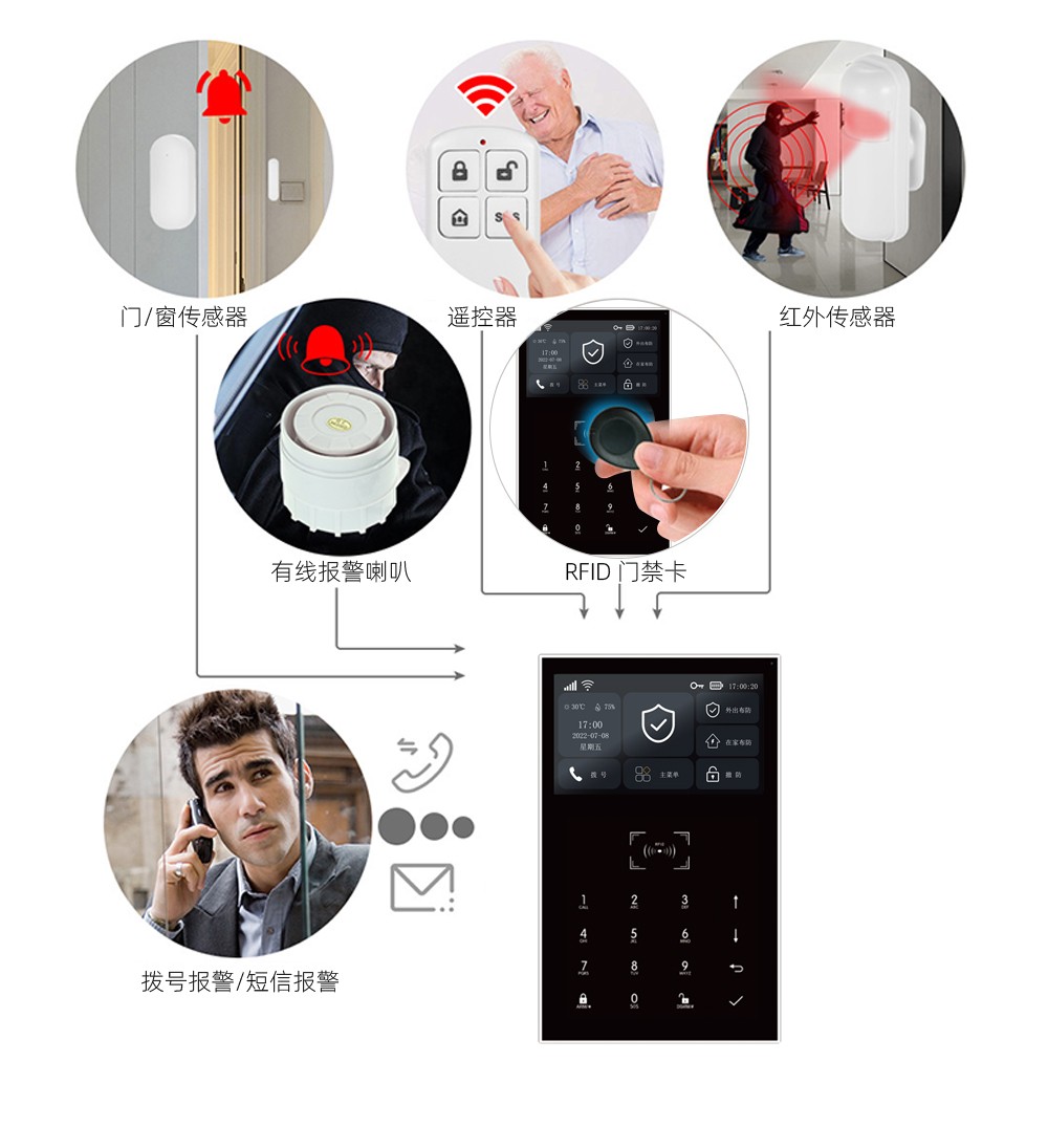 無線傳(chuan)感器低(di)電壓報警提(ti)醒;布防(fang)時(shi)門窗未關提(ti)示(shi);
