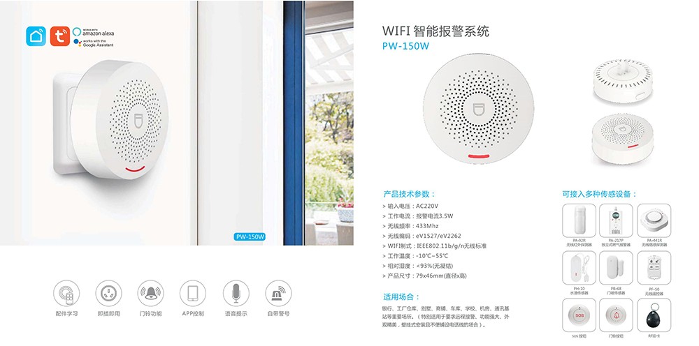 WiFi聯(lian)網(wang)報(bao)警,支持APP推送,確保報(bao)警性能穩定可靠(kao);