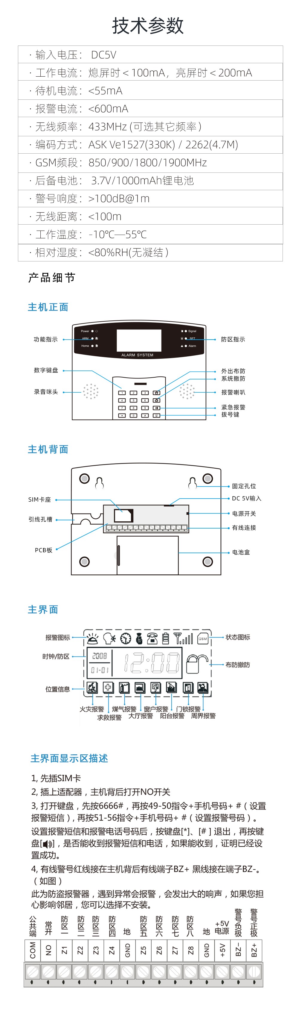 預設2組(zu)短信手機號碼,主(zhu)機自動發送短信報警;
