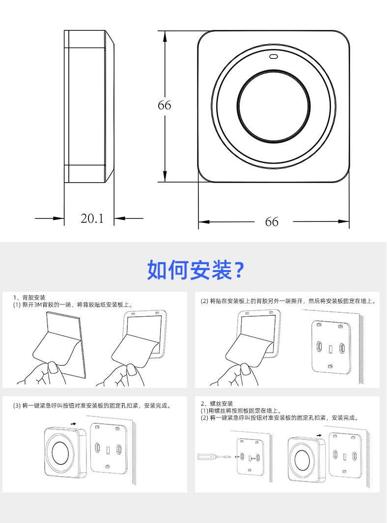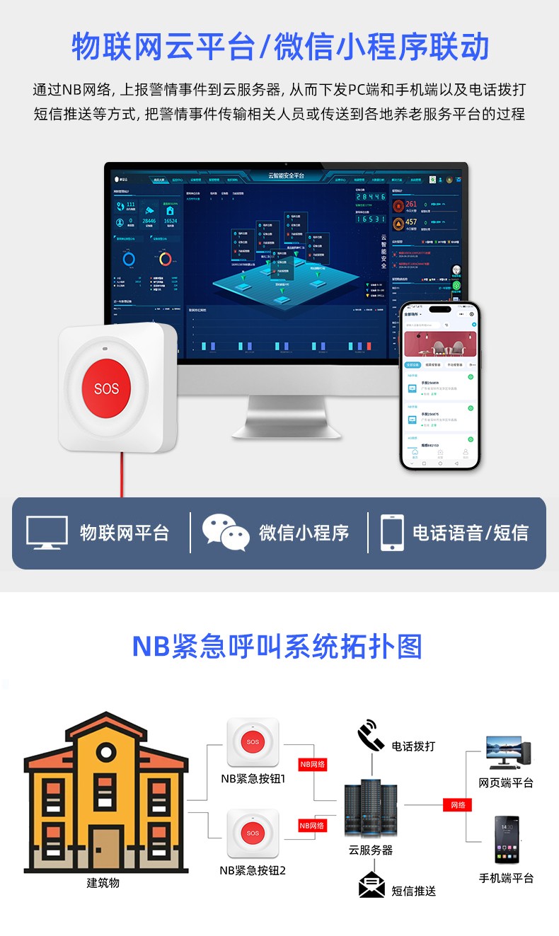 NB-lOT 一鍵(jian)緊急(ji)呼叫按鈕關(guan)愛家人安全(quan),一鍵(jian)呼叫傳達,安裝便捷,遠(yuan)程報(bao)警,多(duo)方(fang)式推送(song)告(gao)警.
