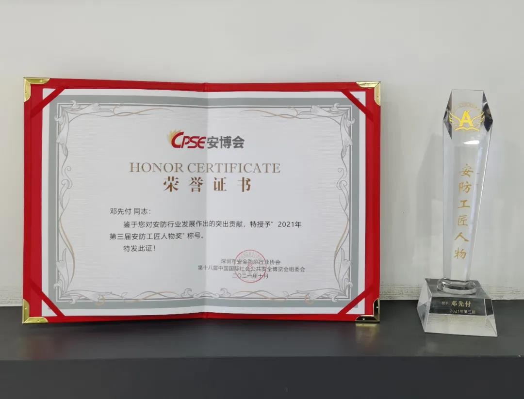 此(ci)前,受(shou)國內(nei)疫情影(ying)響,全(quan)球安(an)(an)(an)(an)(an)防(fang)(fang)(fang)(fang)(fang)行(xing)(xing)業(ye)(ye)(ye)盛(sheng)會(hui)——2021年第十八(ba)屆(jie)中國國際社(she)會(hui)公共安(an)(an)(an)(an)(an)全(quan)博(bo)覽會(hui)(以(yi)下簡稱安(an)(an)(an)(an)(an)博(bo)會(hui))延期舉行(xing)(xing)。幾經波折,第十八(ba)屆(jie)安(an)(an)(an)(an)(an)博(bo)會(hui)于12月(yue)26日在深圳(zhen)會(hui)展中心(xin)拉開帷幕。伴(ban)隨著安(an)(an)(an)(an)(an)博(bo)會(hui)的(de)召開,CPSE安(an)(an)(an)(an)(an)博(bo)會(hui)組委會(hui)聯袂(mei)國家(jia)安(an)(an)(an)(an)(an)全(quan)防(fang)(fang)(fang)(fang)(fang)范(fan)報警(jing)系(xi)統(tong)產品質量(liang)監督(du)檢驗中心(xin)(北京)、深圳(zhen)市安(an)(an)(an)(an)(an)全(quan)防(fang)(fang)(fang)(fang)(fang)范(fan)行(xing)(xing)業(ye)(ye)(ye)協會(hui),旨在探(tan)討安(an)(an)(an)(an)(an)防(fang)(fang)(fang)(fang)(fang)行(xing)(xing)業(ye)(ye)(ye)在AI、云計算、5G、生(sheng)物(wu)識別等新(xin)技術(shu)運用(yong),后疫情時代(dai)下的(de)機(ji)遇與挑(tiao)戰,同(tong)時表彰一批為安(an)(an)(an)(an)(an)防(fang)(fang)(fang)(fang)(fang)行(xing)(xing)業(ye)(ye)(ye)做出(chu)(chu)突(tu)出(chu)(chu)貢獻的(de)個人和(he)企(qi)業(ye)(ye)(ye)的(de)第五(wu)屆(jie)中國安(an)(an)(an)(an)(an)防(fang)(fang)(fang)(fang)(fang)系(xi)統(tong)集成(cheng)商(shang)高峰會(hui)暨安(an)(an)(an)(an)(an)防(fang)(fang)(fang)(fang)(fang)工匠人物(wu)、智慧(hui)安(an)(an)(an)(an)(an)防(fang)(fang)(fang)(fang)(fang)優秀解決方案商(shang)、中國安(an)(an)(an)(an)(an)防(fang)(fang)(fang)(fang)(fang)創(chuang)新(xin)力企(qi)業(ye)(ye)(ye)頒獎(jiang)典禮(li),在會(hui)展中心(xin)六樓桂花廳隆(long)重舉行(xing)(xing),公司董(dong)事(shi)長鄧總受(shou)邀出(chu)(chu)席并榮(rong)膺“安(an)(an)(an)(an)(an)防(fang)(fang)(fang)(fang)(fang)工匠人物(wu)”獎(jiang)。